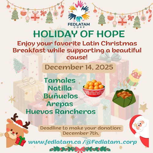En FEDLATAM celebramos nuestra cultura y apoyamos la integración de los latinos en Canadá. Organizamos eventos con música, bailes y gastronomía latina, realizamos actividades de voluntariado con varias organizaciones canadienses, hacemos reuniones de bienvenida a recién llegados con información útil, y ofrecemos webinars sobre salud, trabajo, educación, migración y más.